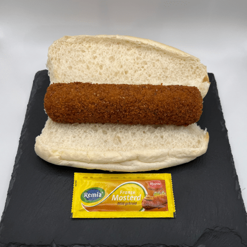 Onze meest luxe kroket. De van Dobben rundvleeskroket, standaard met een zakje mosterd